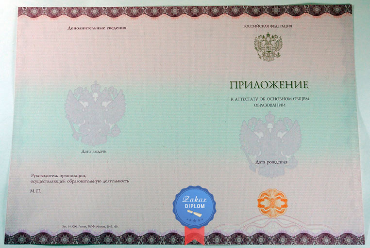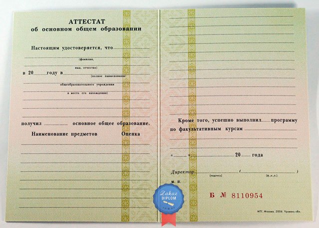 Аттестат за 9 класс – это документ установленного образца, который является подтверждением получения школьником неполного среднего образования. Выдают его ученикам общеобразовательных школ по завершении 9-го класса. Такая "корочка" необходима для поступления в профессионально-технические лицеи, техникумы, колледжи. Наша компания предлагает заказать аттестат высокого качества, который не вызовет вопросов и подозрений в отделе кадров при трудоустройстве или в приемной комиссии техникума при подаче данных для дальнейшего обучения.